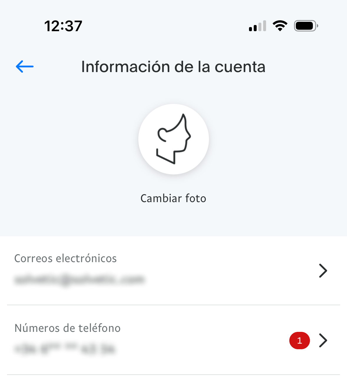 Luego pulsa en "Información de la cuenta" a mi en iPhone me sale asi.