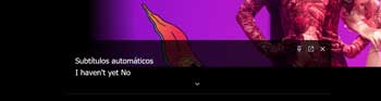 Pues he estado mirando un poco desde mi PC a ver si encontraba solución a tu problema pero no veo así ninguna opción de configuración. Lo que si he visto es un icono que debería pertener a la parte de subtítulos, a mí por al´gun motivo no me deja activarlos pero quizás a ti si:
