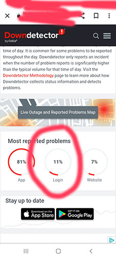 Si deslizas hacia abajo, vas a ver el reporte en forma de porcentaje de los fallos más notificados por los usuarios. Si en el porcentaje de “Inicio de sesión” ves que más personas tienen el problema, es decir, el porcentaje es alto, significará que a más personas les está pasando y por tanto es un fallo interno de la App.