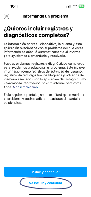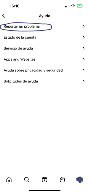 Lo siguiente será seleccionar que quieres "reportar un problema"