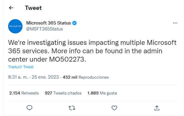 me quedé tranquilo cuando vi que no era problema nuestro interno, sino de la propia Microsoft, y que sería de un rato el solucionarlo. cosa que ya está solucionada (parece).