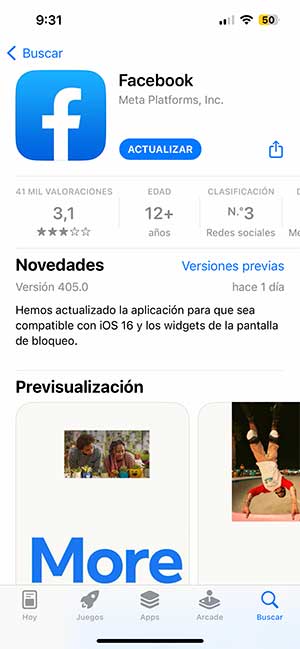 Revisa también si tienes alguna actualización de Facebook para poder ejecutarla y ver si cambia algo en la app.