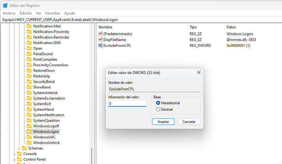 Cómo cambiar sonido de inicio Windows 11 Regedit