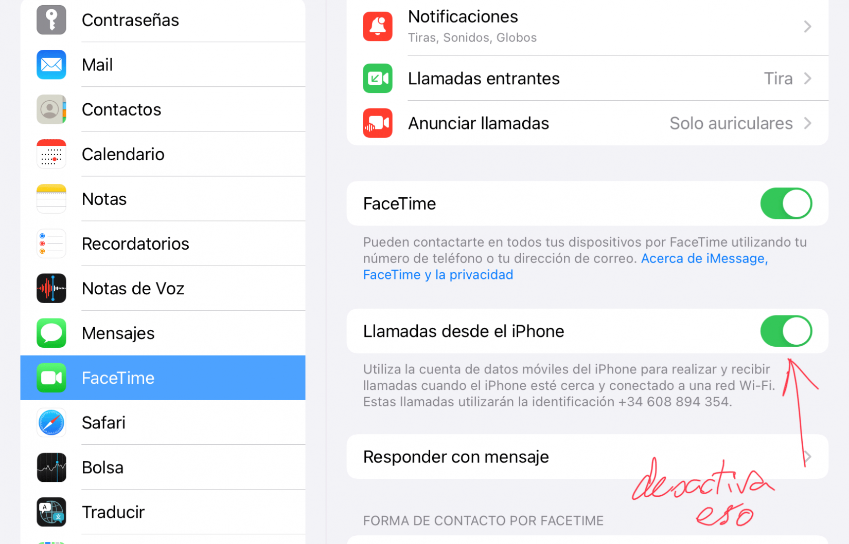 1) Entra en tu iPhone para limitar desde ahi que no dejas que salgan tus llamadas otros dispositivos, porque asi evitas que salte en un Mac, Apple Watch o lo que requieras.