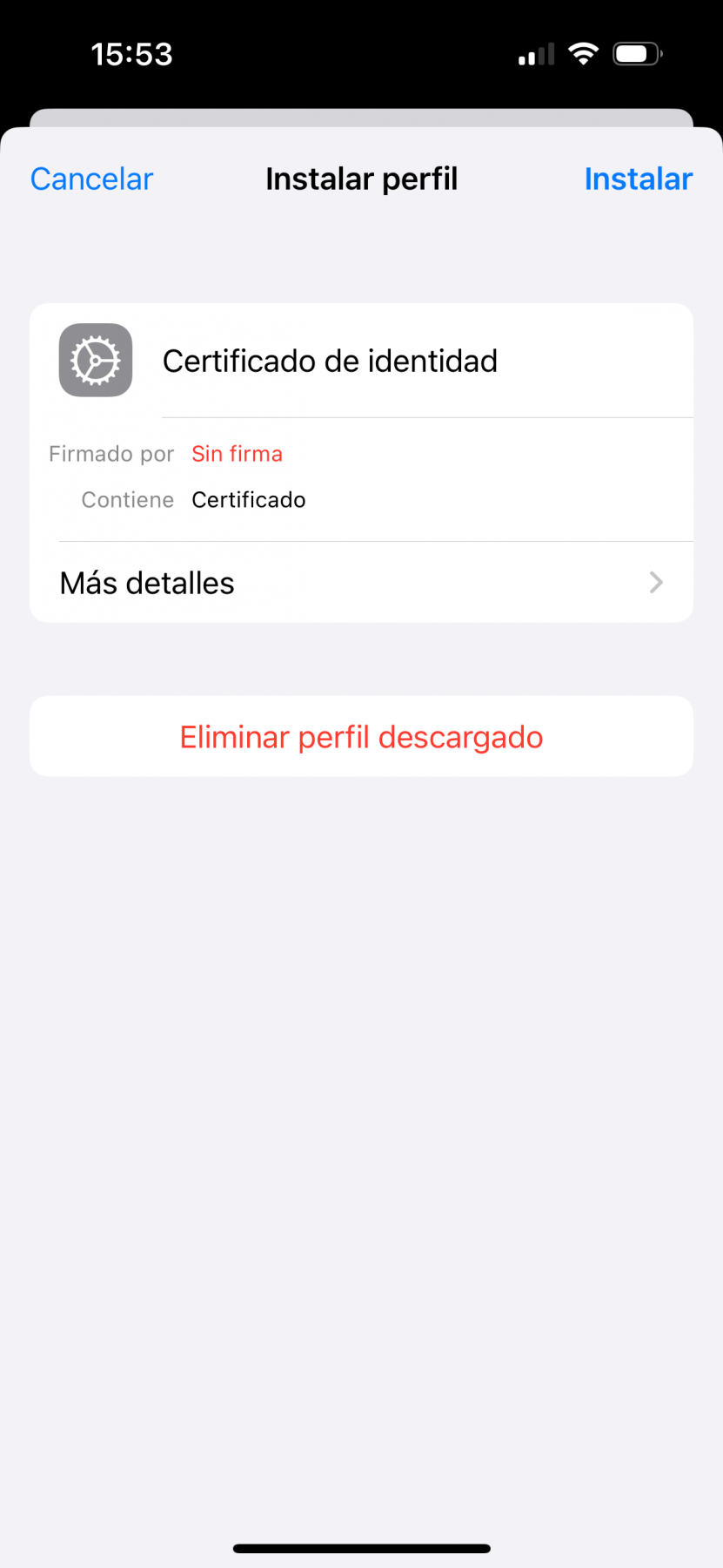 Solo te hace un aviso con ese mensaje de que te ha creado un perfil nuevo en tu iPhone con el certificado que acabas de instalar de la FNMT o de donde sea. Es para todos los cert como dije antes, .pfx y .p12