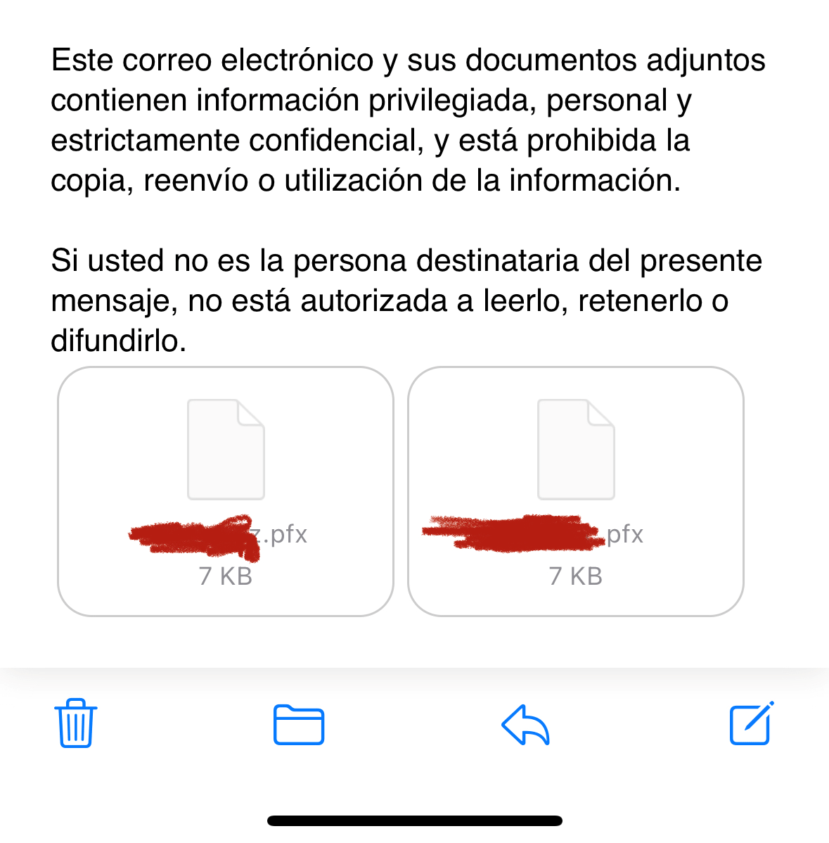 1) Lo primero mandate el certificado o certificados de la fnmt que te quieres instalar a tu correo que tienes configurado en tu iPhone o tienes acceso. Es la forma mas rapida. Ten en cuenta que el certificado debe contener la clave privada y ser una copia original del certificado vaya. Ok te lo has enviado y lo verás en extensión .pfx o .p12 como ves en la imagen que te pongo: