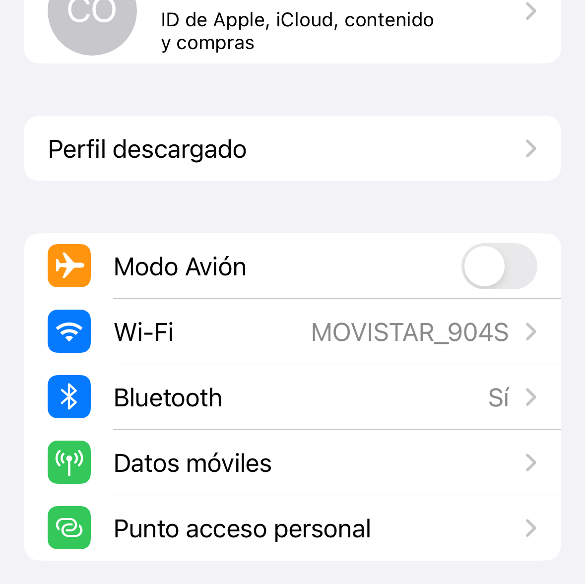 4) Justo debajo de tu nombre de Apple ID arriba del todo, verás que sale la nueva opcion: "Perfil Descargado":