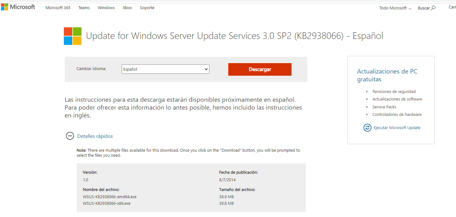Windows Server Update Services 3.0 SP2 (KB2938066) - Español