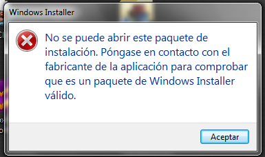 no se puede abrir este paquete de instalacion pongase en contacto con el fabricante de la aplicacion para comprobar que es un paquete Windows Installer válido