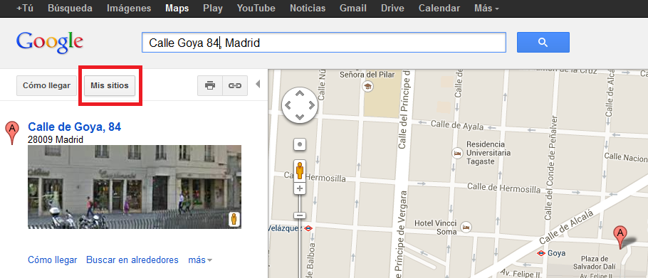 Deberás tener una dirección de Gmail, si no te creas una, una vez hecho eso puedes pulsar en Mis Sitios como te muestra la imágen que te adjunto: