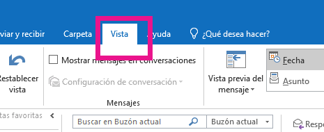 Lo primero es entrar en Outlook y seleccionar en el menú de la parte superior de la App “Vista”.