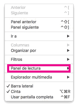 Ahora en el menú desplegable, vas a ver que hay varias opciones. Tienes que elegir “Panel de lectura”