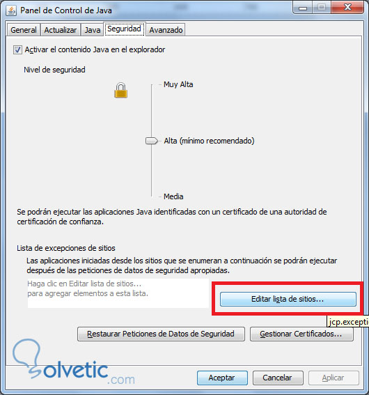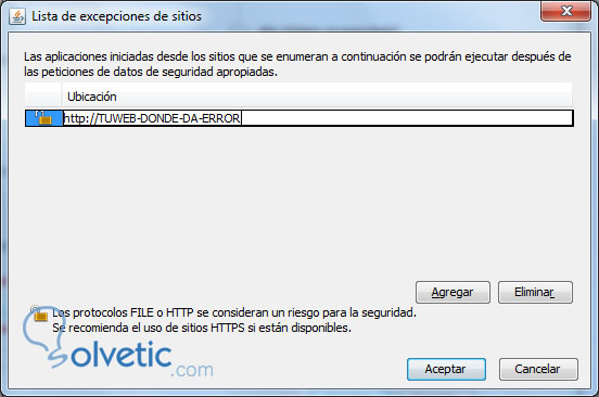 - Aquí puedes añadir las webs que te dan error de bloqueo, es para que funcionen las aplicaciones JAVA.