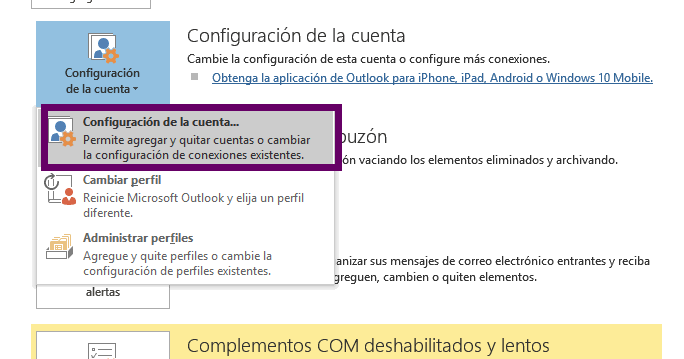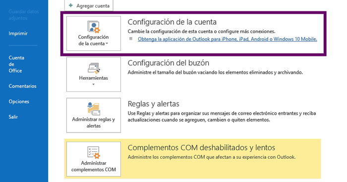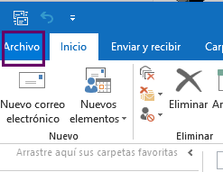 Lo primero que tienes que hacer es entrar en Outlook y seleccionar en la sección de ARCHIVO