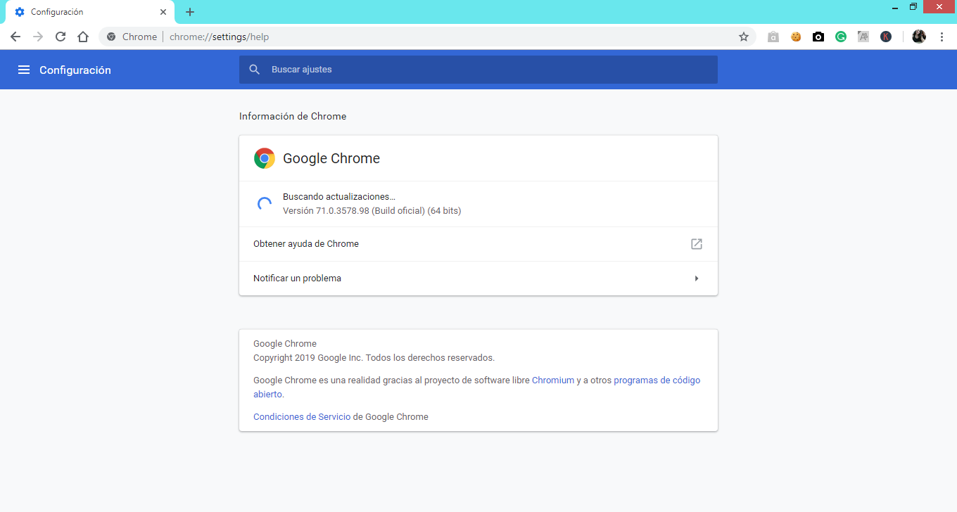 - Cuando chequeas la versión de Chrome que estás ejecutando si está actualizado, debajo del número de versión te aparece el mensaje “Google Chrome está actualizado”. De lo contrario, te indica que hay actualizaciones disponibles.
