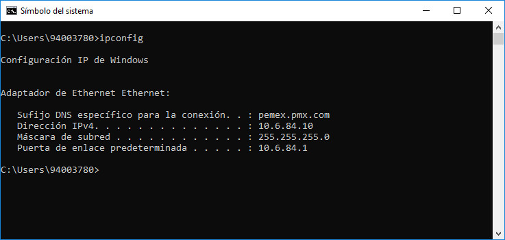 5.- Ahi tipeas el comando ipconfig y enter, donde dice sufijo DNS ese es el dominio o grupo de trabajo.