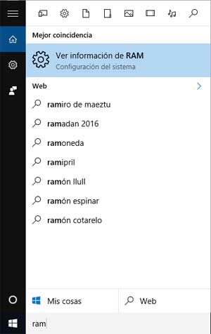 Si tienes Windows 10, puedes chequear la RAM de tu equipo escribiendo en el buscador de Windows "Ram" con ello aparecerá una opción Ver información de la RAM. Entra y verás info.