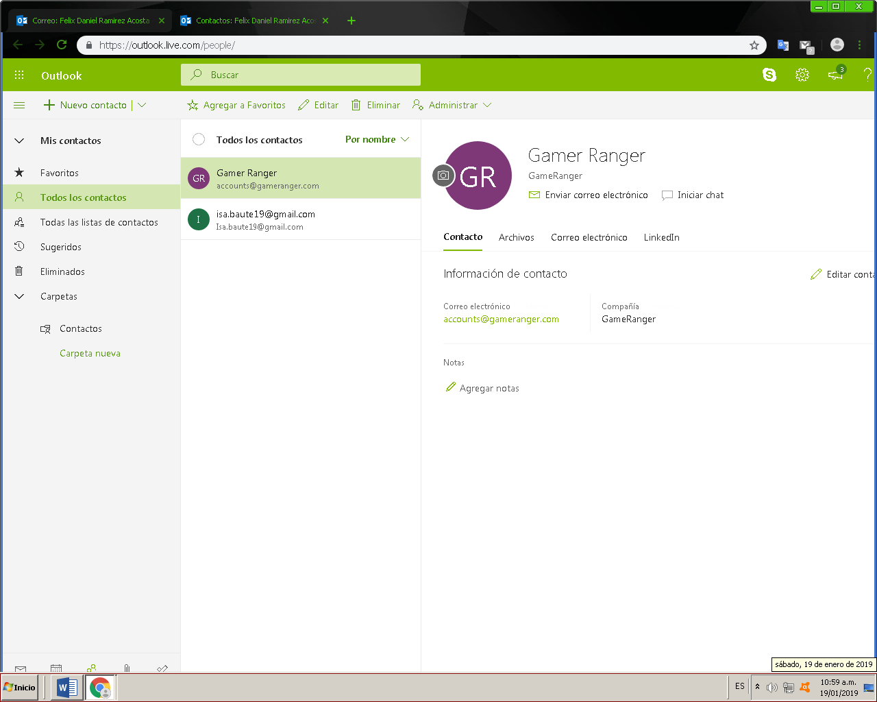 - Lo siguiente que deberás hacer es buscar una dirección de correo y numero de fax. Puedes encontrarlo en “Carpetas” y haz clic en “Contactos”.