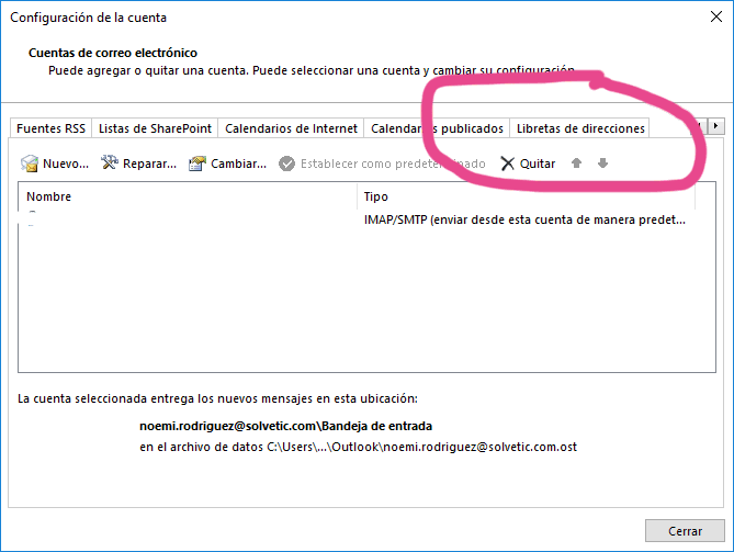 Herramientas > Configuración de la cuenta > Libros pestaña Dirección