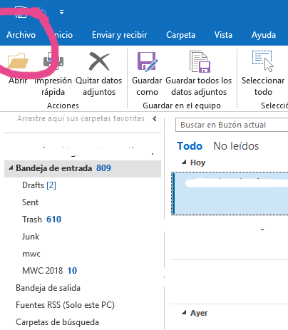 Entra en Outlook y pulsa en Archivo situado en la esquina superior izquierda.