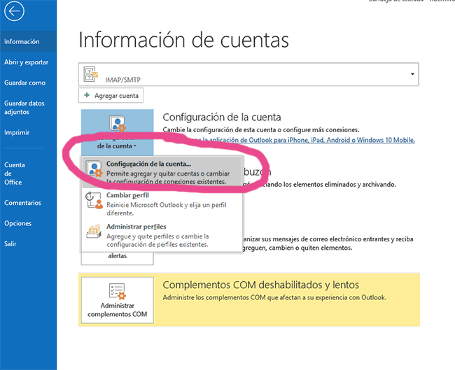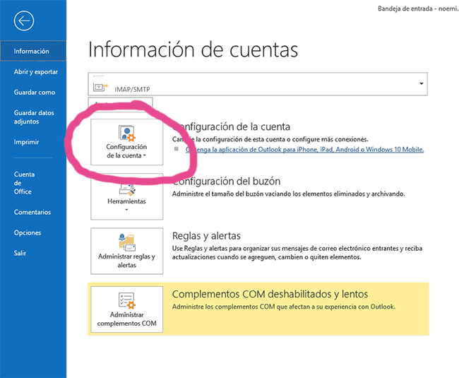 Entiendo tu problema además a mí me paso hace poco algo parecido.. Te explicaré como solventar el problema que tienes en Outlook 2016 que es el que tengo instalado pero la realidad es que en todos es muy parecido!! Y bien, he hecho pantallazos para que todo te quede más claro, porque a veces solo con palabras es un poco lío. Los pasos a seguir son: