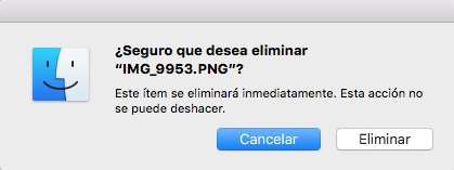 Tendrías en primer lugar que seleccionar el archivo y a continuación pulsar simultáneamente las teclas Alt + Cmd + Borrar. Saldrá entonces un cuadro de diálogo que te preguntará si deseas eliminar el archivo ya que no habrá vuelta atrás. Seleccionas eliminar y listo, ni rastro de el.