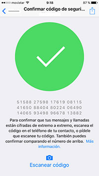 Una vez aquí, debes comprobar que el número que aparece en el código de esa conversación es el mismo tanto para ti como para el otro participante.