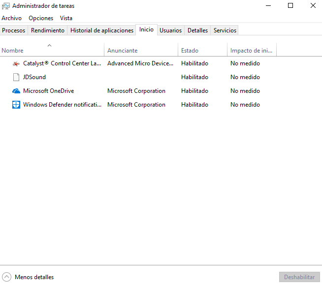 Como quitar programas de inicio del Administrador de Tareas Windows 10