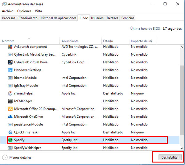 Cómo evitar que Spotify arranque automáticamente cuando arrancas Windows 10