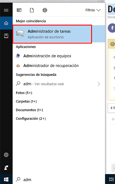 - En la barra de Windows escribe Administrador de tareas y aparecerá para acceder. También accederás utilizando las teclas Windows + X