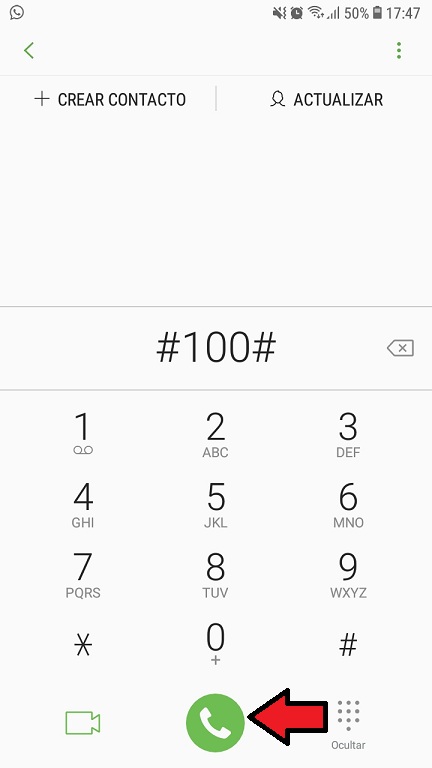 - Realiza el procedimiento anteriormente explicado, solo que esta vez llama a “#100#”.