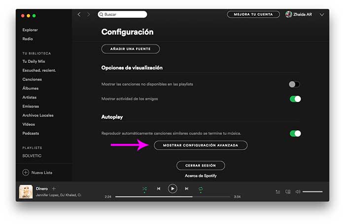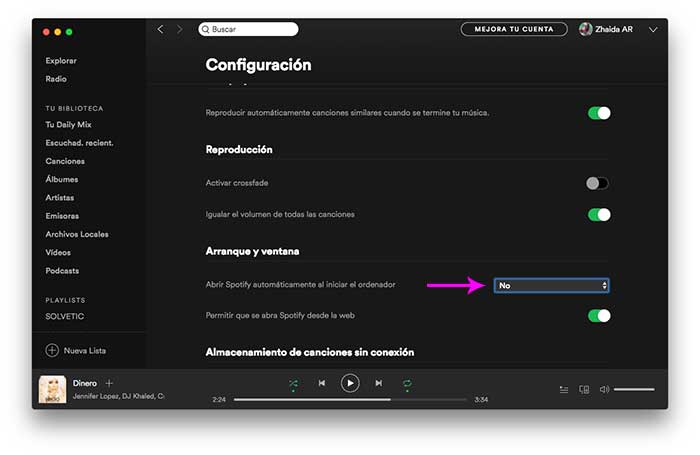Deshabilitar Spotify del inicio arranque de Mac desde Spotify