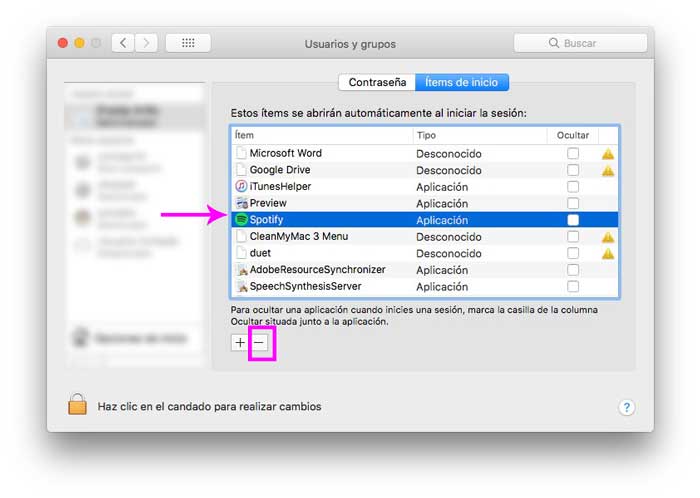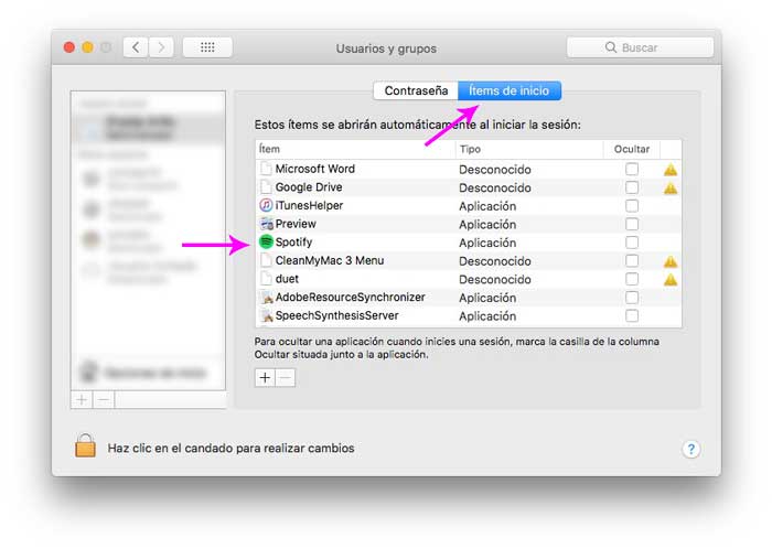Deshabilitar Spotify del inicio arranque de Mac Preferencias