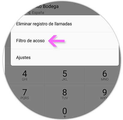 Lo primero que debes hacer es dirigirte a los ajustes de el apartado de llamadas de tu Huawei P9. Esto lo podrás encontrar en el apartado de las llamadas, representado por tres raya horizontales. Cuando lo hayas pulsado, se desplegará la siguiente ventana. Una vez aquí, tienes que seleccionar "Filtro de acoso".