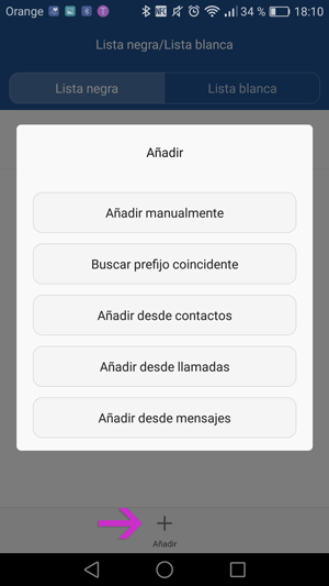 Por ultimo debes seleccionar en la parte inferior la pestaña de "+" . Una vez que pulses aquí, vas a ver que dispone de diferentes opciones para bloquear llamadas en Android. Puedes hacerlo a través de bloqueo del número directamente, de los contactos de tu agenda, de un prefijo, desde un mensaje, desde las propias llamadas...
