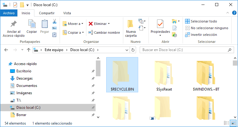 Reparar Papelera de reciclaje Windows 10 borrando la carpeta de sistema Recycle bin