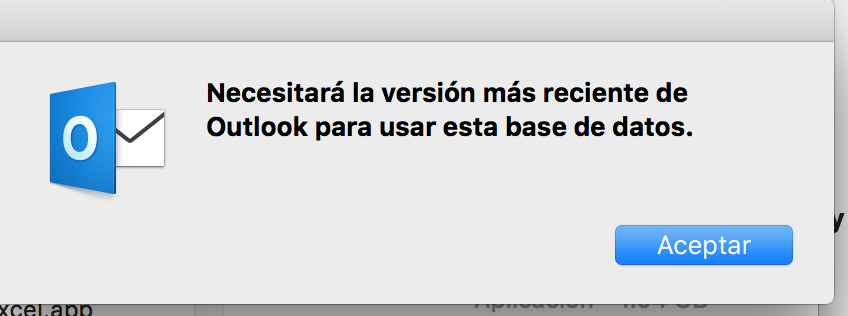 necesita la version mas reciente de outlook para usar esta base de datos outlook