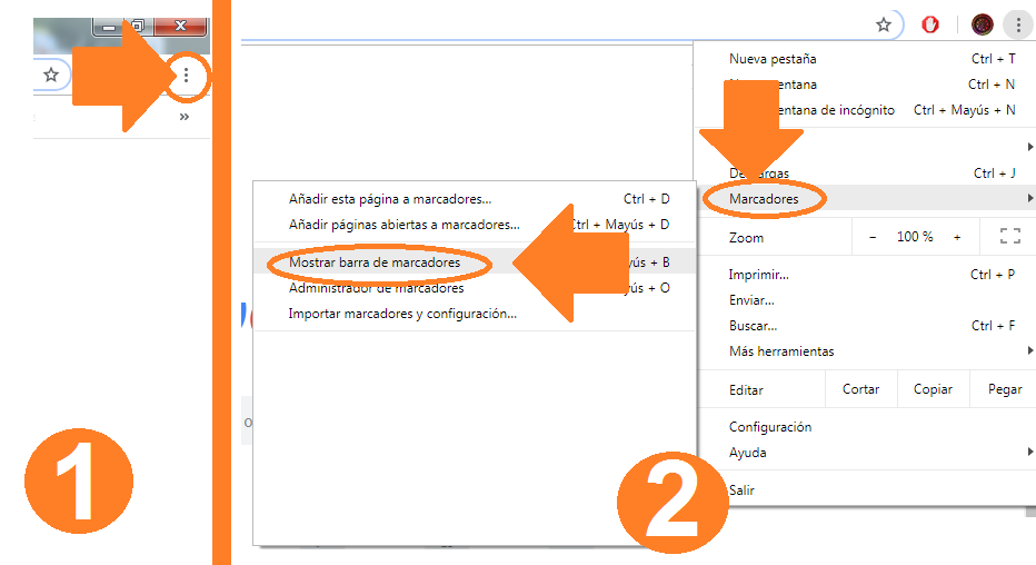 1. Google Chrome mantiene oculta la barra de favoritos y la puedes hacer habilitar para ser visible de una manera muy sencilla, solo necesitas ingresar al icono de menu que se encuentra representado por tres puntos allí selecciona “marcadores” y posteriormente eso te muestra la barra de marcadores.