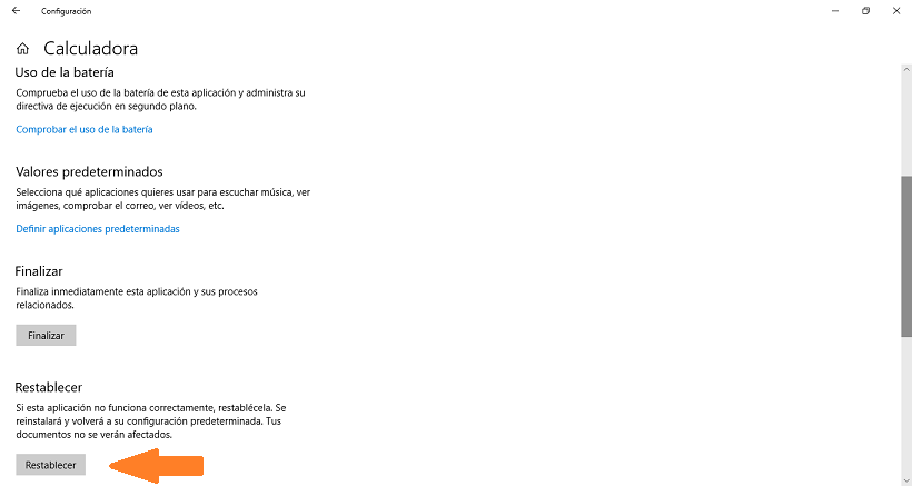 Desde el propio Windows 10 tenemos una forma de restablecer las aplicaciones que vienen integradas por defecto como es la calculadora de Windows 10. Ya vi en páginas oficales que la propia Microsoft recomienda restablecer la aplicación si deja de funcionar de forma correcta.
