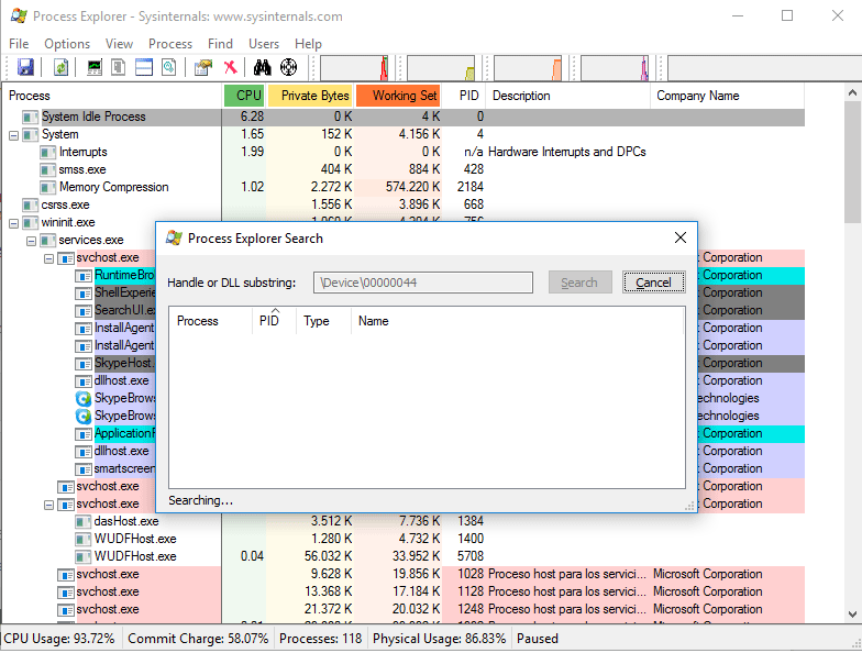 Ahora te descargas el programa Process Explorer. Es gratuito y para mi de los mejores exploradores de procesos, aquí te dejo el enlace oficial de Microsoft para descargarlo e instalarlo (es sencillo.)