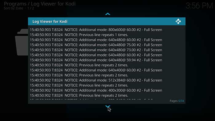 De esta forma vas a poder acceder a los eventos o logs de KODI para determinar cada actividad que sucede con la aplicación.