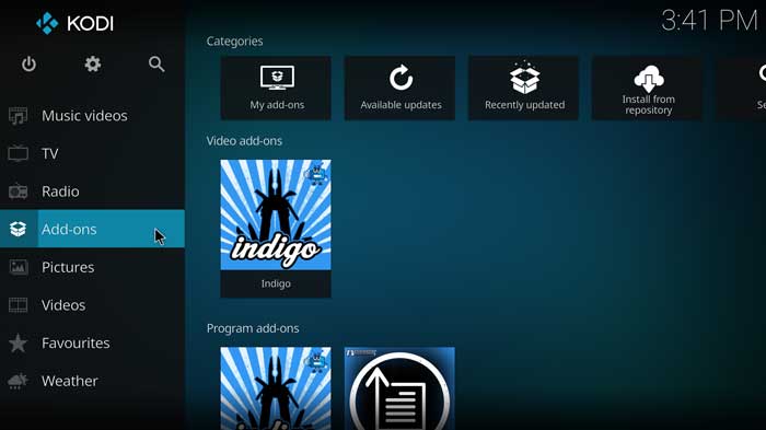 1. Accedemos a la ventana principal de KODI donde seleccionaremos la opción Add-ons: