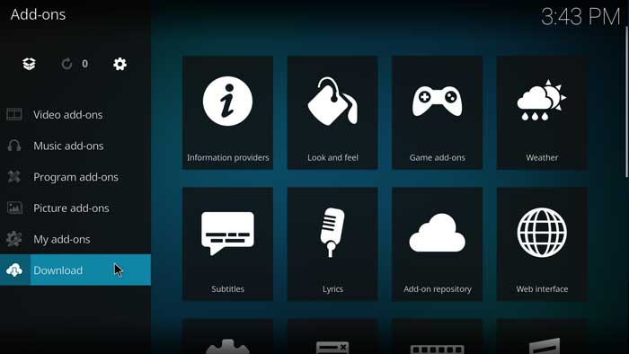 Podremos observar todas las categorías de Add-ons ofrecidos por KODI.
