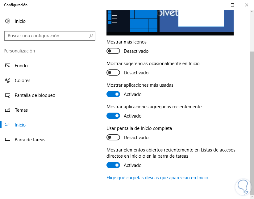 - Tras esto, debes dirigirte al menú de configuraciones de Windows 10 y en la opción de “Inicio” desactiva la opción de mostrar los elementos utilizados/abiertos recientemente.