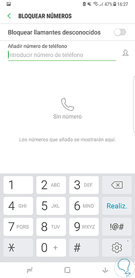 - Ahora solo tienes que agregar el número que quieras bloquear o el contacto dando sobre el icono que aparece.