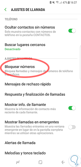 - Aquí en Ajustes de llamada selecciona Bloquear números.