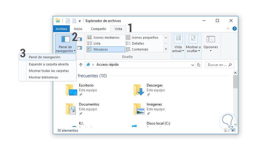 Cómo ver u ocultar panel navegación Explorador archivos Windows 10