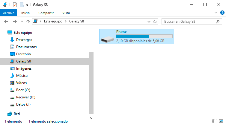 - Conecta tu Galaxy S8 Plus al PC y verás que el ordenador lo detecta.
