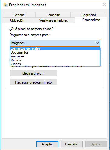 - Donde pone: Optimizar esta carpeta para: Selecciona "Elementos Generales".