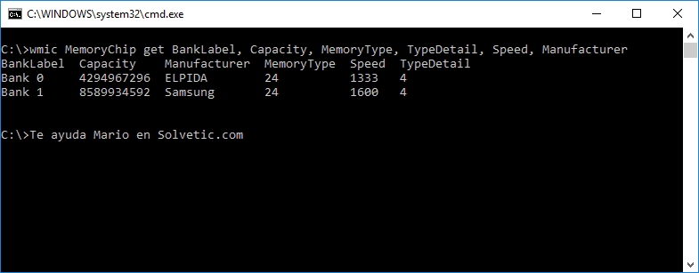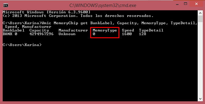 Cómo ver tipo de memoria en el símbolo del sistema CMD Windows 10